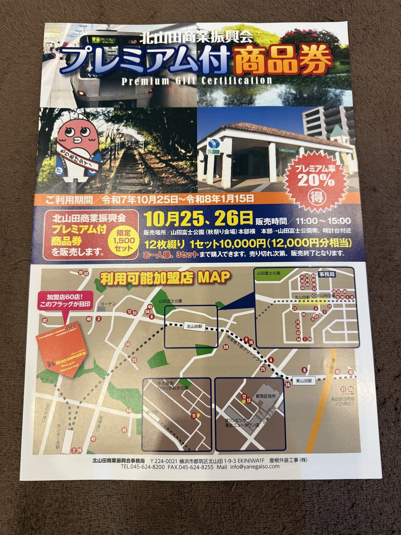 北山田商業振興会では、都筑区初のお得なプレミアム商品券を販売いたします!!