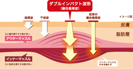 19cm下の筋肉まで筋トレさせます(従来の低周波や干渉波より深く刺激します)