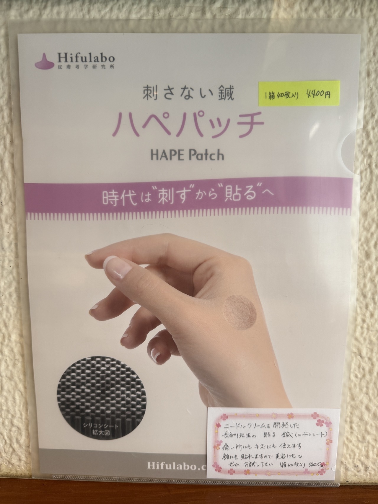 使い捨て鍼、円皮鍼、塗る鍼ニードルクリーム、転がす鍼ハペロールなどを開発された長谷川先生の開発商品です